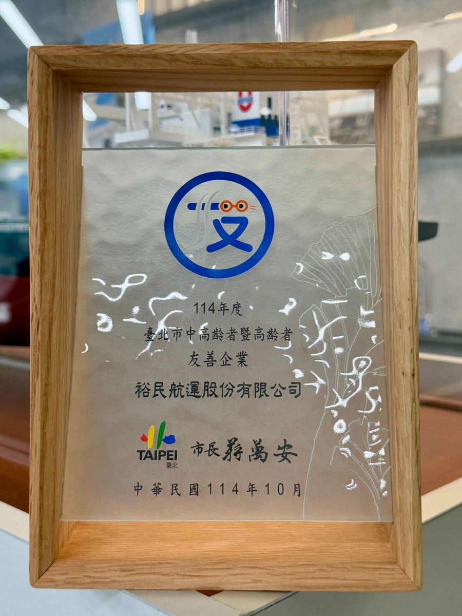 裕民航運致力營造友善、健康與共融的職場環境,今年榮獲臺北市政府頒發「中高齡暨高齡者友善企業認證」,首次取得此項殊榮,展現公司在推動多元共融、健康促進及中高齡友善職場方面的具體成果與持續努力。