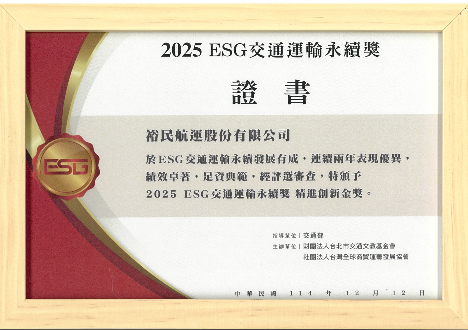 裕民於本次評選中再次榮獲金獎,並獲主辦單位「持續精進」的高度肯定,充分展現其在 ESG 永續發展領域的卓越成果,也彰顯裕民長期深耕永續議題,已成為業界具指標性的典範之一。